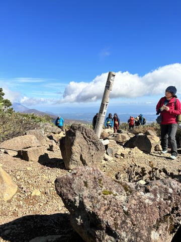 食事休憩する場所も大事で、風が強いから皆さんそれぞれ、小屋の裏手とか、風が弱い場所を探して固まってた。