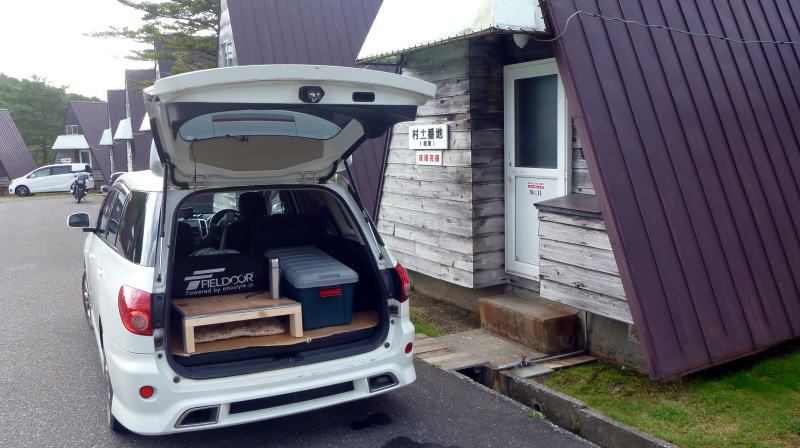 料金は1000円なのでその程度なら、いちいち外にテントを張ったり狭いところで車中泊するよりは、しっかりした屋根と壁に囲まれて手足も思い切り伸ばせて、電気も使える ( しかもここは床暖房まで有る!)建物に泊まるほうが楽で安心。