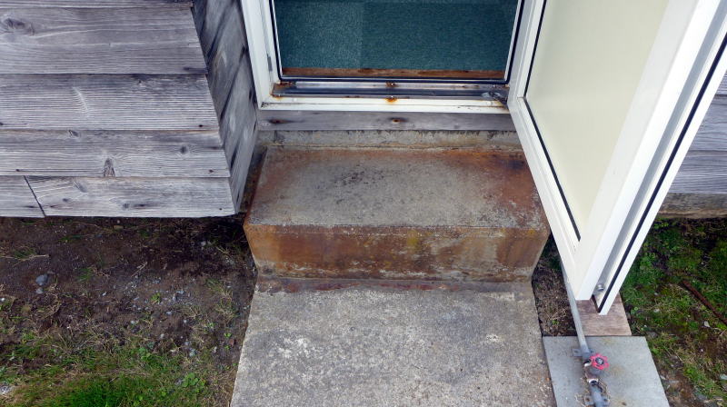 部屋の中に裸の水道管が立ち上がっていて、流しがあり、冬の凍結に備えて不凍栓のバルブも部屋の中にある。