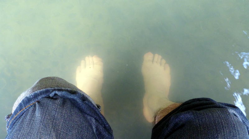 翌朝、出発前に足湯に浸かってみた。 他に客は誰もいなかったので貸し切り状態。
