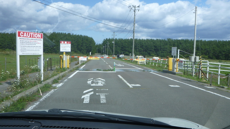 尻屋崎灯台ゲート。 7時から16時45分の間が作動して、中に入れるようになっているらしい。