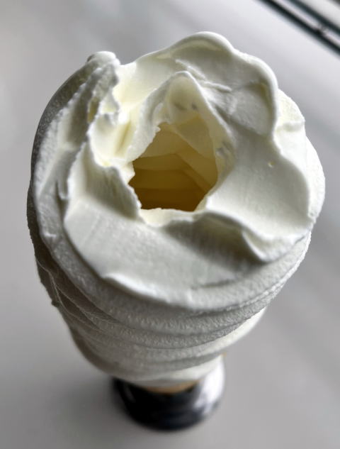 真ん中は中空になっているが、土台の一番底にまでびっしりとソフトクリームが詰まっている。 腹、冷えた(笑)
