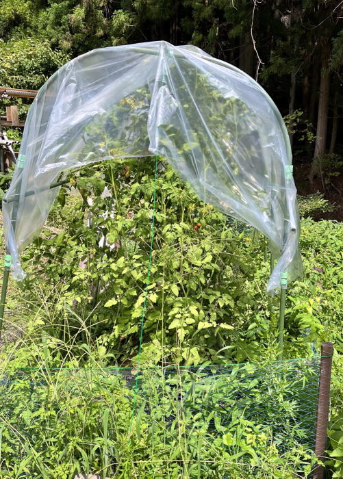 昨年は周囲を全部ネットで囲ったため、菜園に出入りするのがやや面倒だった。 今年は工夫して、中央に扉を作って簡単に出入りが出来るようにした。