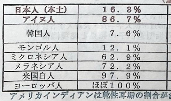 先生は親切で話し好きな人であった。 耳垢に関する資料を一枚頂いた。 以下はその抜粋。